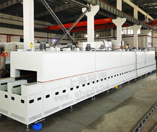 隧道烘箱與標準型烘箱相比,其優點在于自動的加熱干燥,可連續性使用。隧道烘箱主要分為三個部分,即進料區、烘干區、出料區。其工作原理如下: 一、進料區: 產品進入烘干區前,放置產品的地方,其長度為500mm-1000mm左右。產品通過隧道烘箱進料區自動進入第二部分的烘干區進行加熱、干燥等熱處理作業。 二、烘干區: 主要是由框架、鼓風電機、加熱管、箱體四部分組成。兩層箱體之間填充保溫隔熱材料。可持續不間斷地烘烤,提高產品生產效率。多段獨立PID溫度控制,爐內溫度均勻。輸送線速度變頻調速,調節自如,運行平穩,生產效率高。 三、出料區: 按需可加裝散熱風扇,使烘干區的產品加速冷卻,以便下一流程的作業。 四、輸送線部分: 網帶、板鏈輸送線兩側配有傳動鏈條,解決運輸過程中跑偏的現象。隧道烘箱是分段式加熱,獨立電箱控制、操作方便。結構主要由輸送系統與烘干爐兩大部分組成。