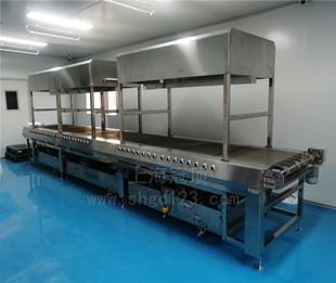 食品紅外線烘烤爐 尺寸規(guī)格(約):總長6800mm、上料段長600mm,電熱烘烤段長5000mm、出料段長600mm、爐道口寬800mmX高300mm、外寬1000*高1600mm(不含爐體外設(shè)施高度) 溫區(qū):分2個(gè)溫區(qū)獨(dú)立控制。 溫度范圍:室溫~+500℃,可調(diào),可恒溫 。 溫度均勻度:±2%℃(恒溫狀態(tài)下,空載測試) 儀表溫控精度:±1℃ 升溫速率:≥8℃/min 外殼溫度:溫升不超過環(huán)境+15℃,接縫處周邊除外。 電源:三相五線制,380V,50HZ 加熱管:SUS304不銹鋼翅片發(fā)熱管加熱,具有耐高溫,散熱快的特點(diǎn)。 加熱總功率約:40KW。 我司專業(yè)生產(chǎn)各類食品網(wǎng)帶式烘烤爐、隧道爐、食品烘箱等設(shè)備。