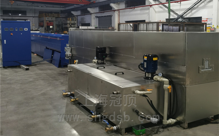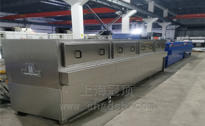 五金件清洗烘干機(jī) 水箱尺寸 長1.8米*寬0.7米*高0.7米 外形尺寸(約) 長4米*寬0.4米*高約1.345米(不含水箱尺寸) 溫度范圍 室溫~+50℃可調(diào),可恒溫 。升溫速率 ≥4℃/min 加熱方式 水箱加熱采用套管式電加熱(防止漏電、腐蝕) 電源 三相五線制,380V,50HZ。功率(約) 加熱、供水、送風(fēng)、傳動(dòng)等總功率約22KW。 軌道清洗后進(jìn)入烘干線干燥處理,烘干線參數(shù): 外形尺寸(約) 長5.5米*外寬0.6米*高約1.3米; 加熱內(nèi)膽尺寸 長5.5米*寬0.4米*高0.25米 溫度范圍 室溫~+150℃可調(diào),可恒溫 。升溫速率 ≥8℃/min 外殼溫度 溫升不超過環(huán)境+15℃,接縫處周邊除外。 運(yùn)風(fēng)方式 水平循環(huán)運(yùn)風(fēng)。 加熱方式 電加熱(配專用熱風(fēng)機(jī)循環(huán)加熱) 電源 三相五線制,380V,50HZ。功率(約) 加熱25kW,總功率約30KW。 具體工藝參數(shù)規(guī)格請(qǐng)來電詳詢:18930058003, 021-67353639 ;并歡迎海內(nèi)外用戶前來公司考察交流指導(dǎo)。